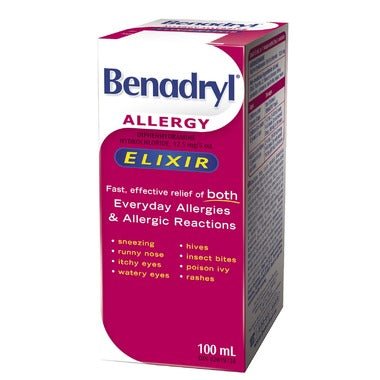 BENADRYL® Liquid Elixir provides fast, effective symptom relief from allergies and allergic reactions. It’s available in a liquid format for flexible dosing.