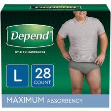 Depend Fit-Flex Men's Incontinence Underwear keeps you protected from bladder leaks with DryShield Technology, providing you all day comfort, guaranteed.* Absorbent material instantly locks in wetness and odors, providing long lasting dryness and a more comfortable** experience. Designed with the SureFit waistband to help keep it in place and form-fitting elastic strands to provide a discreet fit under clothing, unlike bulky adult diapers. This disposable underwear is available in a masculine grey color.